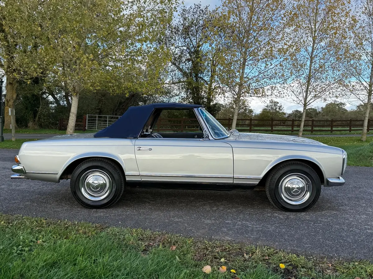 One sale with Bruce Greetham Classic Benz is a very presentable car, but it has room to improve, the 250 SL Pagoda. It can be enjoyed as is or improved with Bruce to the standard you desire. It can be painted or taken on a euro road tomorrow. It is mechanically sound, and investments have been made to ensure this 250 Pagoda is there to be driven, not a garage queen. The engine, body and chassis are all matching numbers reconciling with the DATA card. It starts on the cold start correctly and Idles without any hesitation. It changes gear as it should with confidence in braking correctly and a compliant suspension set-up.
