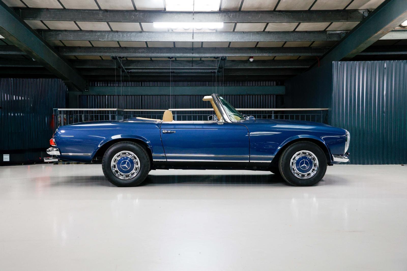 For sale is this amazing W113 280 SL Pagoda in concours condition. It was ordered and delivered new to Malta in 1970 and entered the UK shores in 1990. Spent a life continuing in the UK, where it recently underwent a full strip and rebuild to a condition that can only be described as award-winning concours. Every aspect of this car was restored to perfection. A colour change was chosen to enhance its looks from 670 light ivory to 397 Metallic blue.