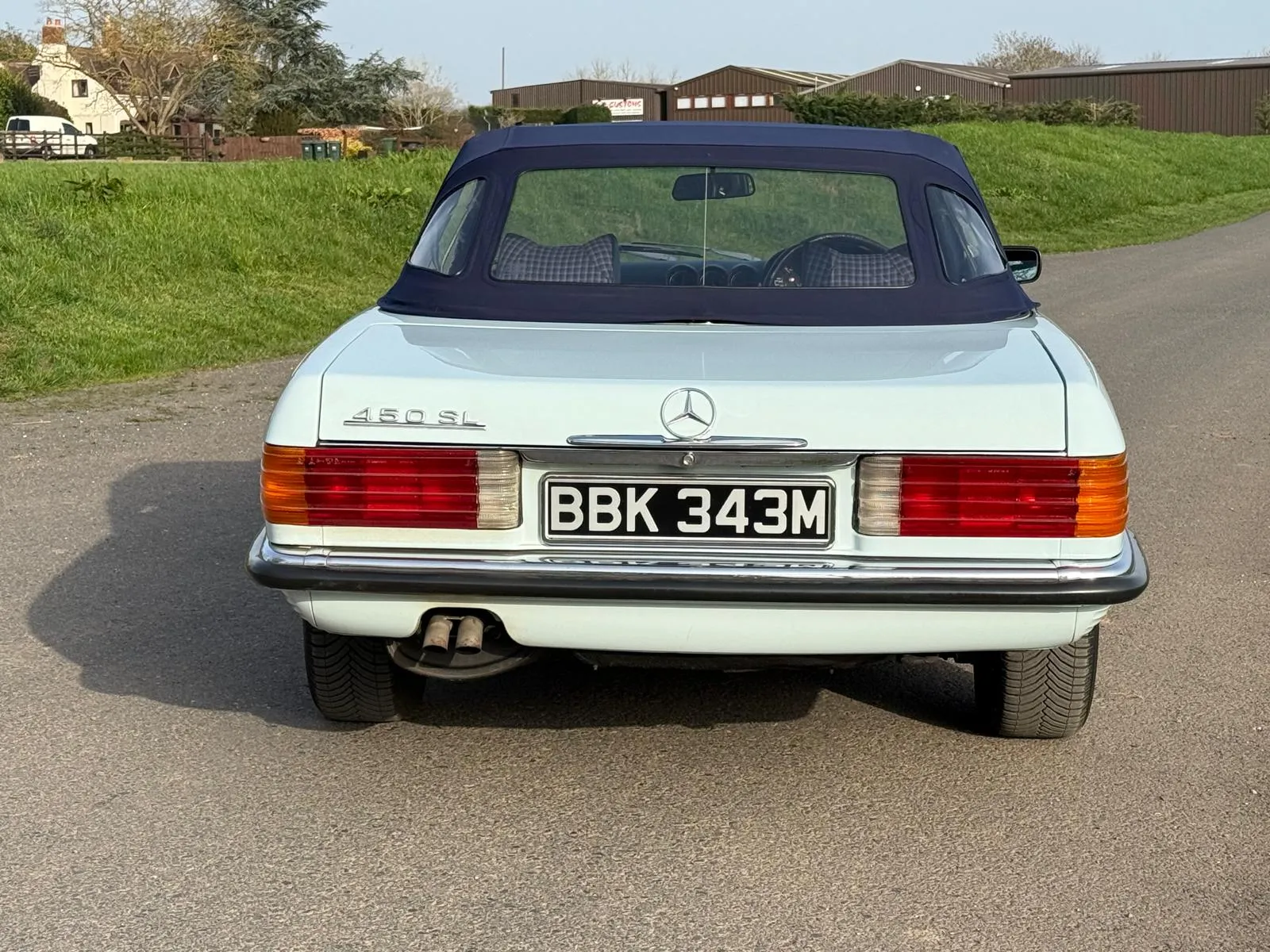 Only recently, the current owner decided to fully retrim the interior to the blue sports check interior, including new seat covers and base supports. New carpets of the period type alongside a new Blue Soft Top. This is a rare opportunity to own such an elegant, classy 450 SL in all its period glory and stand out from the R107 crowd.