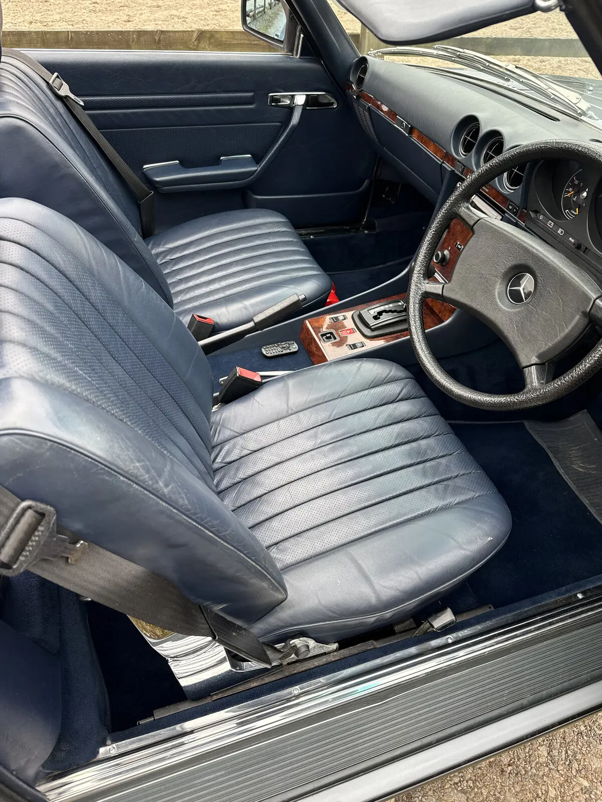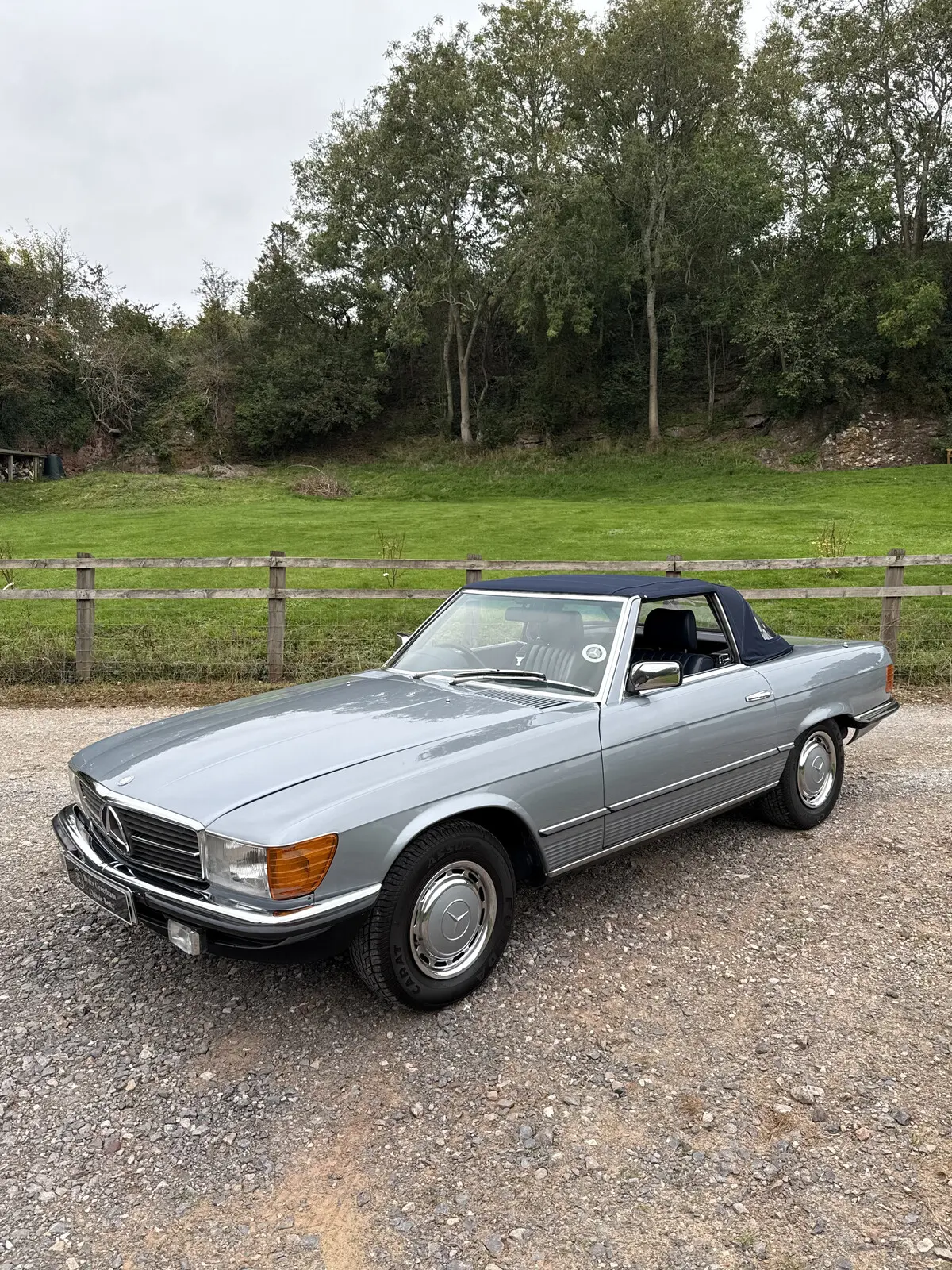 The condition is remarkable for a 42-year-old Classic Mercedes and is now ready for the fourth Owner. Painted in beautiful Silver Blue with a hardtop painted in a Lapis Blue. Soft top is as new as the day it was fitted, still showing the MB Logos on each window.