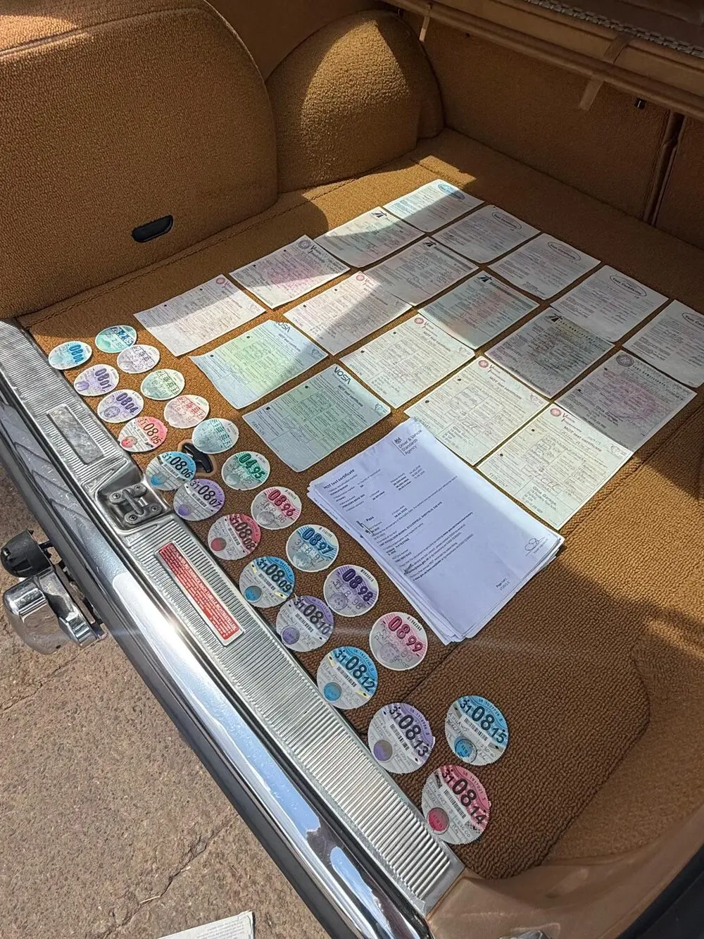 The service manual has the dealer stamps for a few years, and then it was maintained within his company, as he had a haulage business, which took care of it. The dark Red leather wallet is like new, and all books, manuals are present with spare keys dealer-supplied key ring, and a tax disc holder. The most interesting part of the history, all MOT certificates have been present since new alongside pretty much every one of the Tax discs all in order.