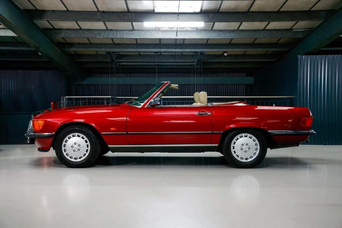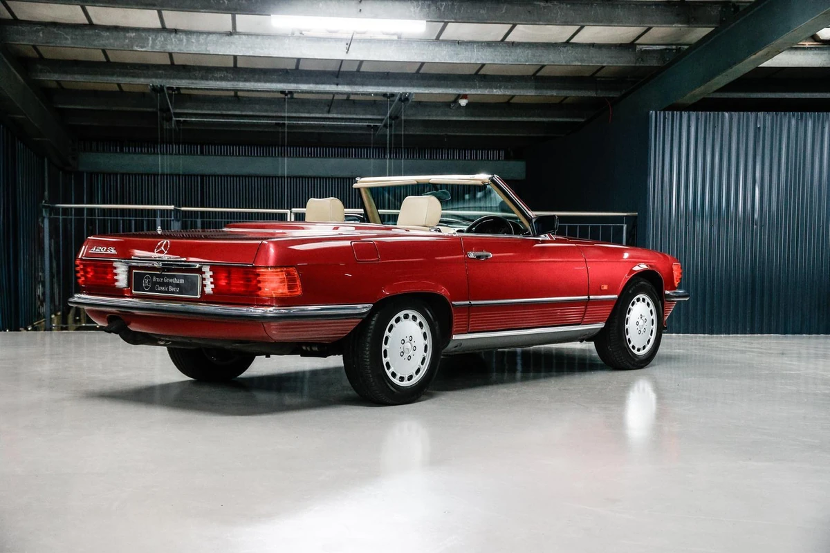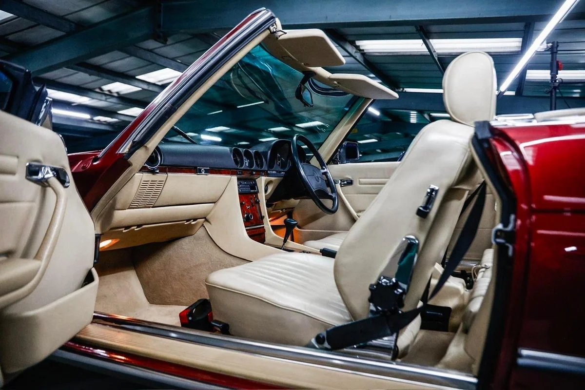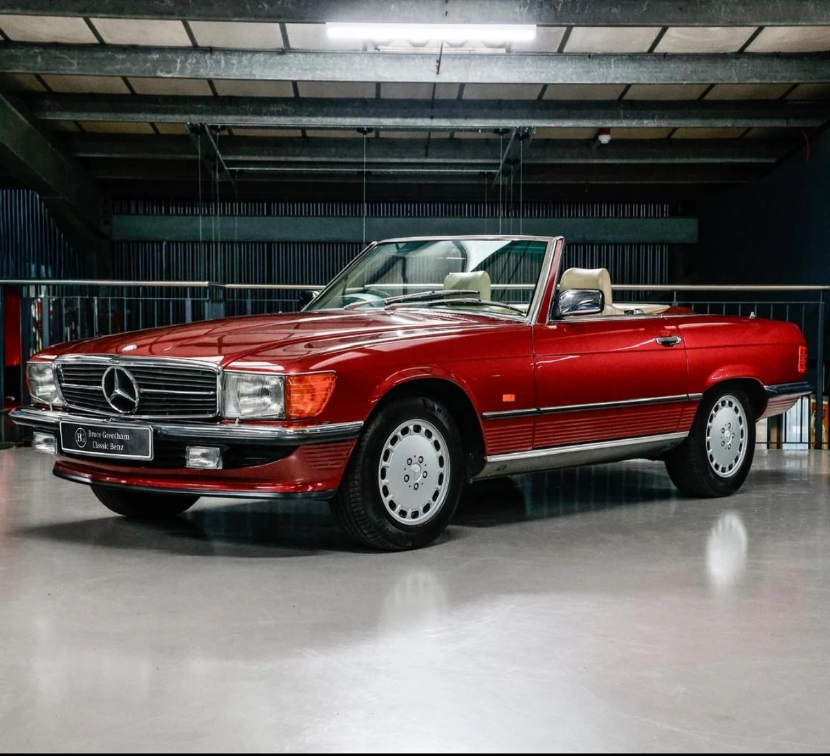 On sale is a stunning R107 420 SL from the V8 stable. The 420 SL was the lowest production model made, and this example was near the last of the production made, being a 1989 G plate car. A very well optioned model with cream leather seating, including factory rear seats. A lovely usable mileage of just 64,000, so ready for the UK and Euro road trip.