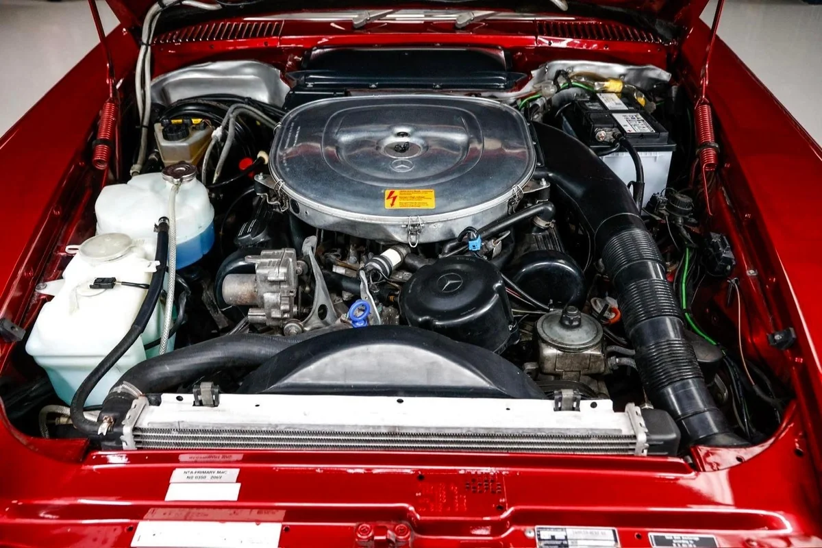 The SL was taken back to bare metal repaint two years ago, with a huge investment carried out with the obsessive owner at the time, following every mechanical part that was available was replaced by the well-known marque Specialist John Haynes. It drives like a new car with zero rattles or squeaks and as tight as a drum to drive, a pure delight. The previous owners have documented all receipts and bills during their ownership with all Tax discs, service stamps. This can only be described as a credit to the last owner to bring such a beautiful SL to such a remarkable condition.