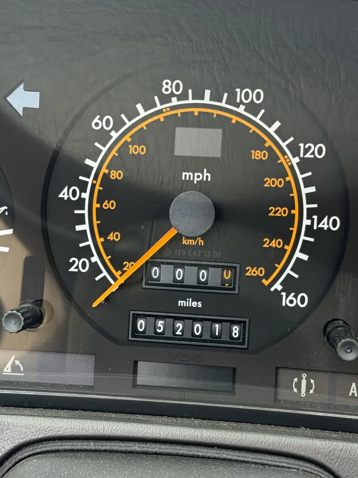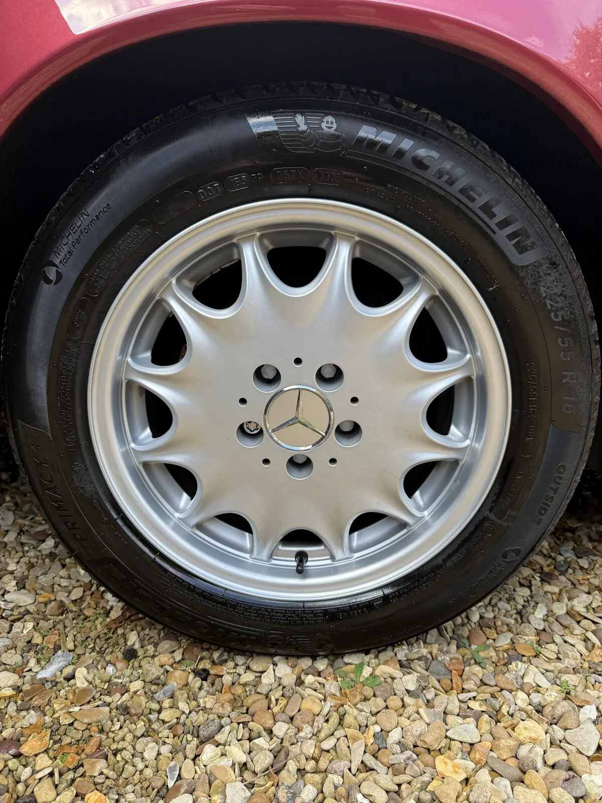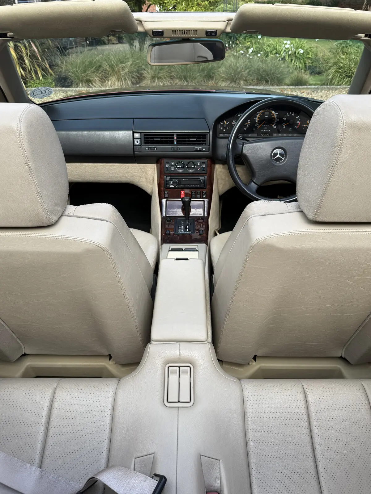 Those who know that a very early R129 with orange indicators is not easy to find now, and with such a 2 previous owner and low mileage, what is there not to like? These 32-valve quad cam V8s are a joy on the road, and the performance is staggering for a car now over 33 years old. The wheels have been upgraded to a generation from the mid-nineties, another owner's choice.