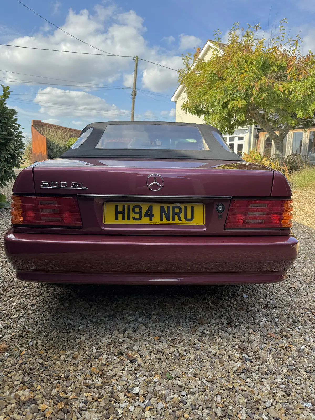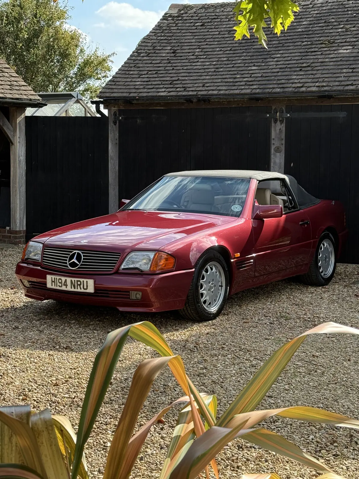 This stunning R129 500SL started life in Guernsey in 1991 until the year 2000, it was then imported back to the UK until 2013, and then taken back to Guernsey until 2022, still with the first owner. The 2nd Owner has owned it to the current date. So it is only 2 previous owner vehicle. Painted in the beautiful Almandine Red metallic paintwork, matched with a cream mushroom leather interior. The History file is documented throughout its life with all matching keys, wallet, and service book. It has recently, in 2024, had a healthy investment made to bring everything in line mechanically and cosmetically to the owner's personal standards, a sum of over £15000.