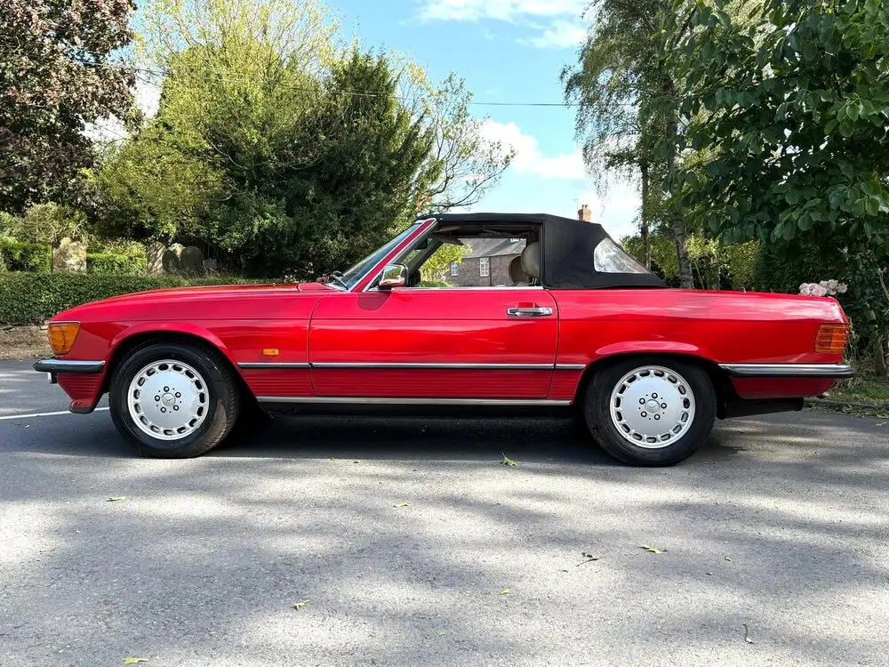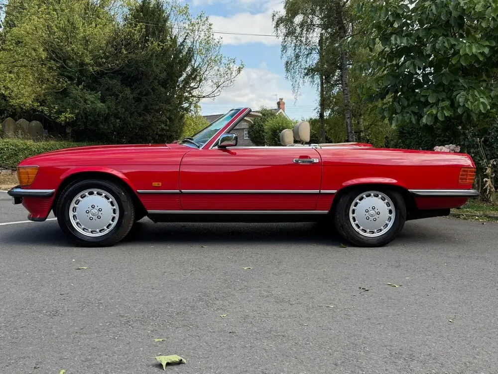 On sale with Bruce Greetham Classic Benz Ltd is a beautiful R107 1988 F plate 300 SL. The current owner has cherished this SL for over 24 years, living a life in his heated garage. Only used when in fine weather and serviced and MOT'd every year. Previous to that are three other owners which carries service records and stamps throughout their journey. Painted in the iconic Signal Red, and feel the best colour to complement this is Cream leather interior. No rips or tears, and a very honest SL. It was road tested with seamless gear change and compliant suspension with no hidden problems. The mileage of just 60'000 miles is spot on for those who want to use it and not be frightened of eroding its values. This is the sweet Spot.